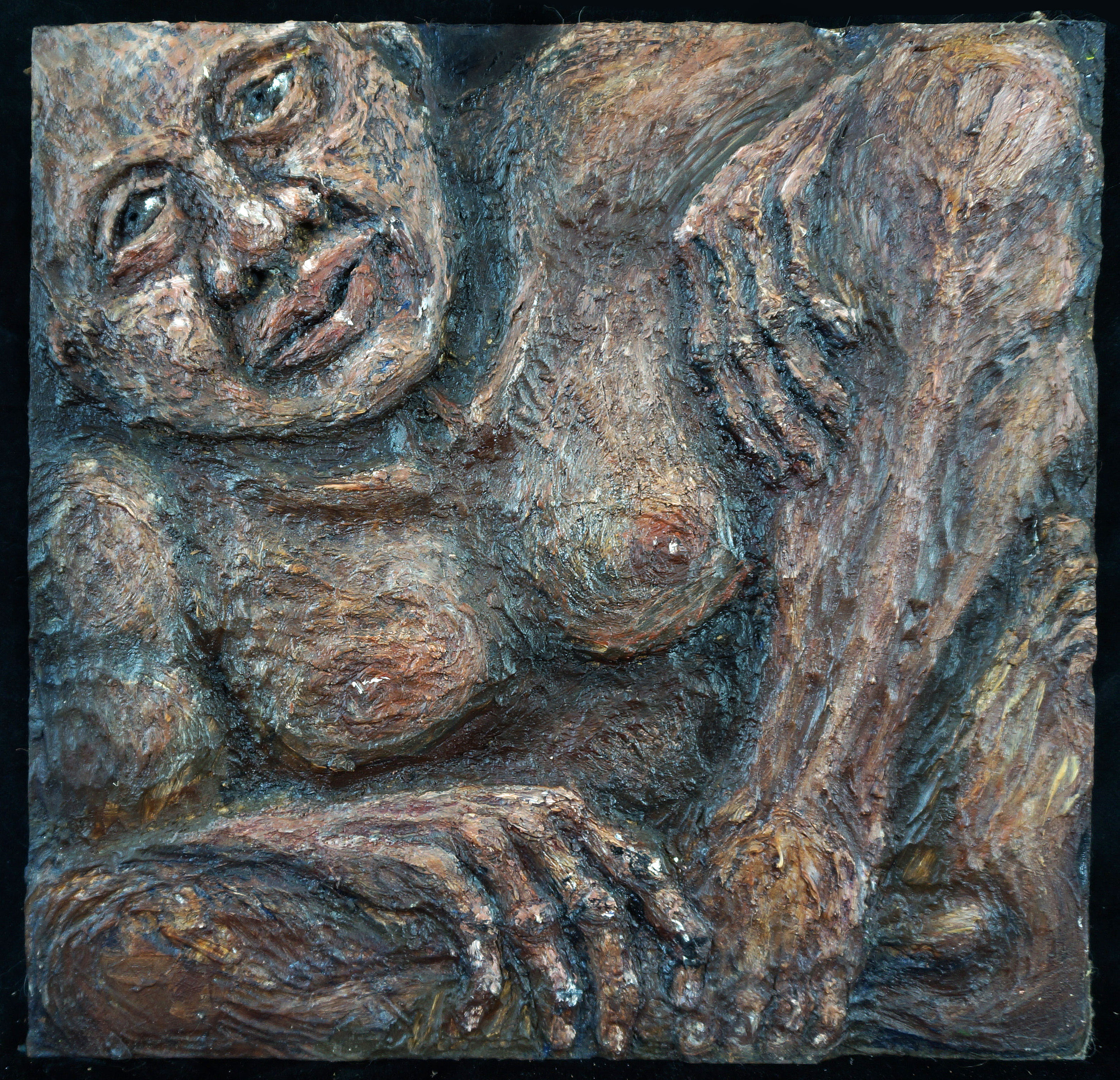 Recluse 12"x 12" Oil and Acrylic on carved Linolium on Board 2014-15